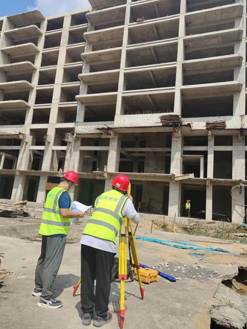 面對多處未竣工的復(fù)雜現(xiàn)場環(huán)境和時間緊任務(wù)重等諸多因素,測繪人頂住壓力,認真將地下車庫、墊層、筏板、地上住宅和頂板等一一做出分類測繪。