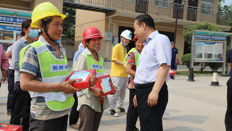 為切實(shí)做好防暑降溫工作,給項(xiàng)目工友送去清涼,鄭州市總工會(huì)精心準(zhǔn)備了夏季防暑降溫用品和礦泉水。市總工會(huì)、消防救援支隊(duì)領(lǐng)導(dǎo)為一線職工送去防暑降溫用品,慰問(wèn)看望一線職工,將工會(huì)組織的關(guān)懷送到職工心坎上。