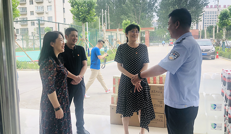 來(lái)到龍湖派出所,張華首先向在高溫酷暑中始終堅(jiān)守崗位、奮戰(zhàn)一線的廣大公安干警表達(dá)了親切慰問(wèn)和崇高敬意,并送去了西瓜、飲料、方便面、防疫消毒用品等物資。