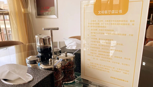 全集團要積極傳承中華民族優(yōu)秀飲食文化和尊重勞動、珍惜糧食、勤儉節(jié)約的傳統(tǒng)美德,大力弘揚勤儉節(jié)約、艱苦奮斗的崇高精神,積極倡導(dǎo)“文明就餐,杜絕浪費”的用餐文化,營造“節(jié)約光榮、浪費可恥”的良好氛圍。