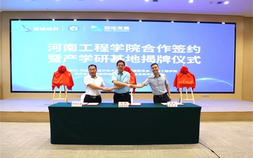 會上,河南工程學(xué)院、管城經(jīng)濟(jì)技術(shù)開發(fā)區(qū)管理委員會、河南鄭地產(chǎn)城融合建設(shè)發(fā)展有限公司共同簽署產(chǎn)學(xué)研合作協(xié)議,并現(xiàn)場為河南工程學(xué)院校外實(shí)習(xí)基地、產(chǎn)學(xué)研合作基地、就業(yè)基地揭牌。