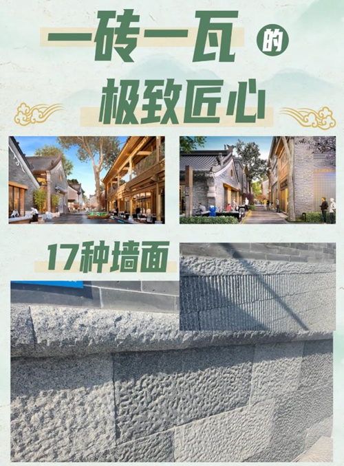 在15個院落采用了17種墻面,其中僅有5種墻面采用了新磚,這不僅體現(xiàn)了對審美的高標(biāo)準(zhǔn),也反映了項(xiàng)目對材質(zhì)和施工工藝的嚴(yán)格要求。