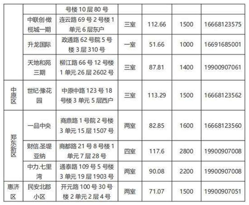 本批次配租房源共計32套,其中金水區(qū)12套、管城區(qū)7套、二七區(qū)8套、中原區(qū)1套、鄭東新區(qū)3套、惠濟區(qū)1套。水電費均為民用水電標準,物業(yè)費為各小區(qū)物業(yè)收費標準,房源精裝修交付,周邊配套設(shè)施齊全,配備家具家電,拎包入住,后續(xù)房源將根據(jù)裝修進度情況陸續(xù)配租。