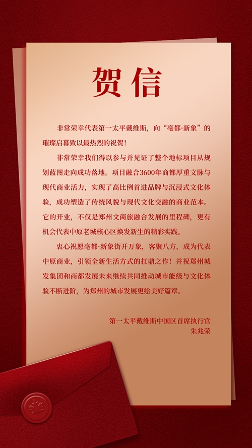 “亳都·新象”由城發(fā)集團(tuán)投資建設(shè),項(xiàng)目的成功開(kāi)街,不僅是商業(yè)運(yùn)營(yíng)的勝利,更是城市文化與商業(yè)融合發(fā)展的典范。第一太平戴維斯中國(guó)區(qū)首席執(zhí)行官朱兆榮在賀詞中表示,“亳都·新象的開(kāi)業(yè),不僅是鄭州文商旅融合發(fā)展的里程碑,更有機(jī)會(huì)代表中原老城核心區(qū)煥發(fā)新生的精彩實(shí)踐。”