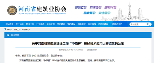近日,由河南省住建廳指導(dǎo)、河南省建筑業(yè)協(xié)會(huì)主辦的河南省第四屆建設(shè)工程“中原杯”BIM技術(shù)應(yīng)用大賽獲獎(jiǎng)名單揭曉,經(jīng)過(guò)層層評(píng)審,由鄭州地產(chǎn)集團(tuán)投資管理有限公司主導(dǎo),上海建工二建集團(tuán)有限公司、機(jī)械工業(yè)第六設(shè)計(jì)研究院有限公司配合完成申報(bào)的河南省人民醫(yī)院地下智能停車(chē)及綜合開(kāi)發(fā)建設(shè)項(xiàng)目BIM技術(shù)應(yīng)用榮獲建筑類(lèi)綜合成果三等獎(jiǎng)。