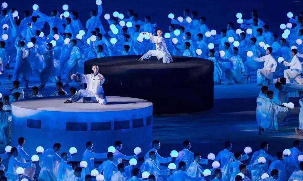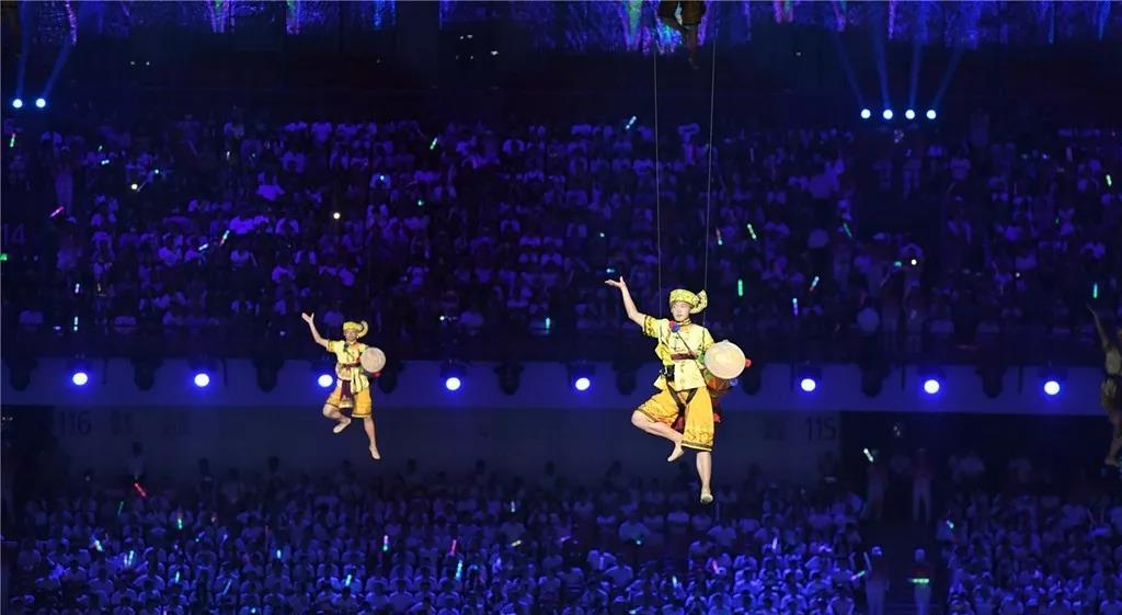 5塊總面積,超過3000平米的輕型透明網(wǎng)幕,130余臺高清投影機覆蓋上萬平米場地,通過威亞的技術(shù)手段和地面投影相呼應(yīng)。地面、空中、立面多維度的表演空間,將各種特色民族元素呈現(xiàn)出來,呈現(xiàn)了各族人民的幸福生活,書寫出一張張民族文化名片。當現(xiàn)場各族人民跳起歡快的舞蹈,當各民族美麗的服飾在現(xiàn)場轉(zhuǎn)出最絢麗的弧度,展現(xiàn)出各民族團結(jié)奮進、朝氣蓬勃的精神風貌。作為河南特色的少林和太極兩個重要元素也在本次開幕式精彩亮相,由塔溝武校數(shù)千名演員演繹。隨著音樂節(jié)奏的轉(zhuǎn)換,他們變幻各種造型,動靜結(jié)合、氣勢恢宏,讓觀眾更加了解精彩河南。