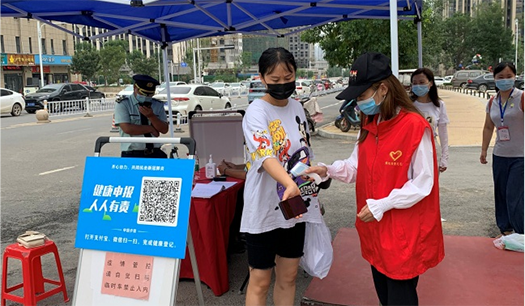疫情防控刻不容緩。志愿者們首先仔細詢問了社區(qū)值守人員防疫工作流程及細節(jié),認真記錄社區(qū)防疫的步驟和相關(guān)要求。志愿者們配合社區(qū)工作人員提醒大家正確佩戴口罩,對進出社區(qū)人員進行健康掃碼和體溫測量,一個個忙碌的身影為社區(qū)抗疫一線筑牢“防護墻”。