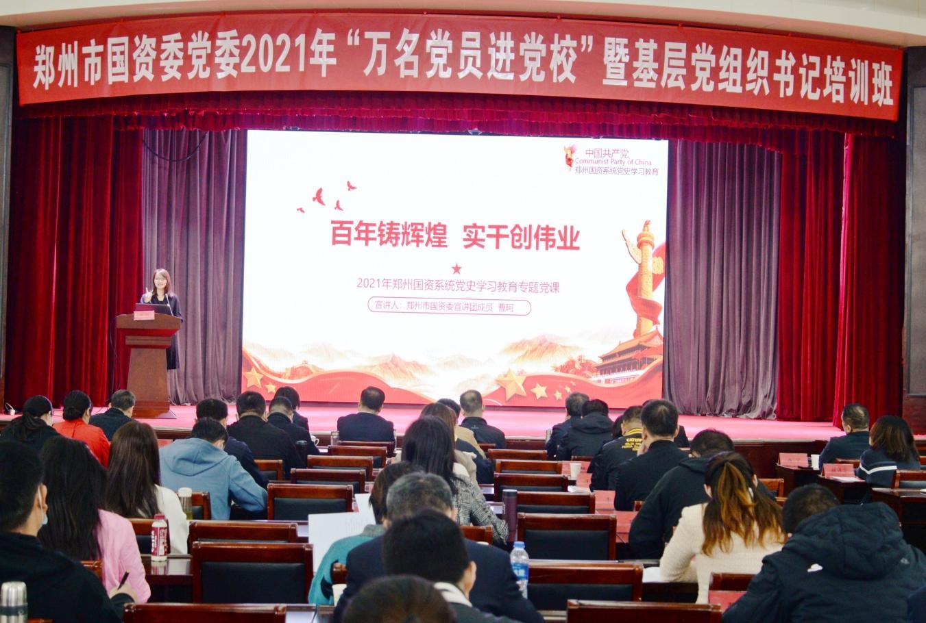 10月19日,鄭州市國資委黨委舉行2021年“萬名黨員進(jìn)黨校”暨基層黨組織書記培訓(xùn)活動,鄭州地產(chǎn)集團(tuán)西流湖公司黨支部曹珂同志作為市國資委宣講團(tuán)成員,向市國資委黨委市管企業(yè)優(yōu)秀黨支部書記、優(yōu)秀共產(chǎn)黨員130余人進(jìn)行了以《百年鑄輝煌 實(shí)干創(chuàng)偉業(yè)》為主題的黨課宣講。