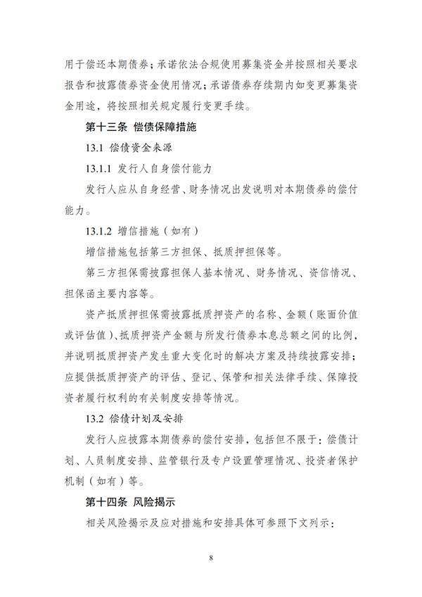 (二)發(fā)行人應按照監(jiān)管部門和交易場所的規(guī)定,在存續(xù)期內(nèi)定期披露財務情況、經(jīng)營情況、募集資金使用情況、項目進展情況等相關信息。如存續(xù)期內(nèi)變更募集資金用途或發(fā)生其他對債券持有人權益有重大影響的事項,應符合相關法律法規(guī)和政策要求,按照有關規(guī)定或約定履行程序,并及時公告。